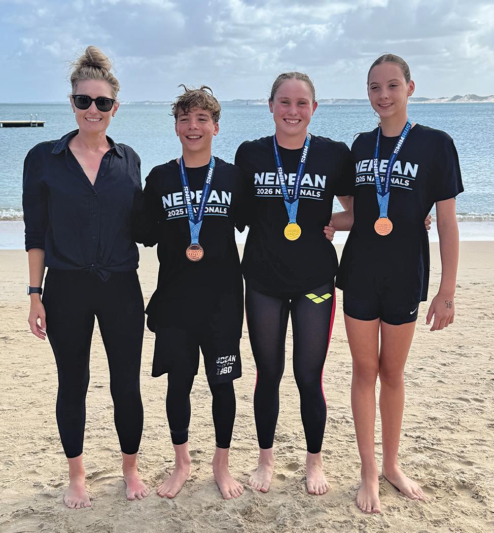 SWIMMING: The Nepean Aquatic Centre Swim Club continue to prove why they are one of the best in the country, returning from the Australian Open Water Championships in Western Australia with incredible results. The local Swim Club is now home to three National medallists, 10 National finalists and the best relay team in the state. Delinda Thompson won gold, crowned National Champion in the 15YR Girls 5km. Evie Nagy collected bronze in the 14YR Girls 5km, while Noah Morphett also picked up bronze in the 14YR Boys 5km. Other Nepean Aquatic swimmers to finish in the top 10 in their respective events included Finn Kelly, Julian Falzon, Kaylen Tweedie, Euan Woods and Vienna O’Conner. Nepean Aquatic swimmers to finish in the top 20 included Luke Grand and Amelia Bolton. Nepean Aquatic also finished inside the top 10 in the Open Relay, with teenagers Delinda Thompson, Finn Kelly, Julian Falzon and Kaylen Tweedie the first NSW team to finish (8th overall). “I’m incredibly proud of what our team has been able to achieve over in Bunbury,” head coach SarahJane Weir said. “These results are a testament to the hard work and commitment of each of our athletes and I feel incredibly privileged to be part of their stories.” Following her gold medal performance, Delinda Thompson was one of 12 swimmers named in the Australian National Flipper Squad.