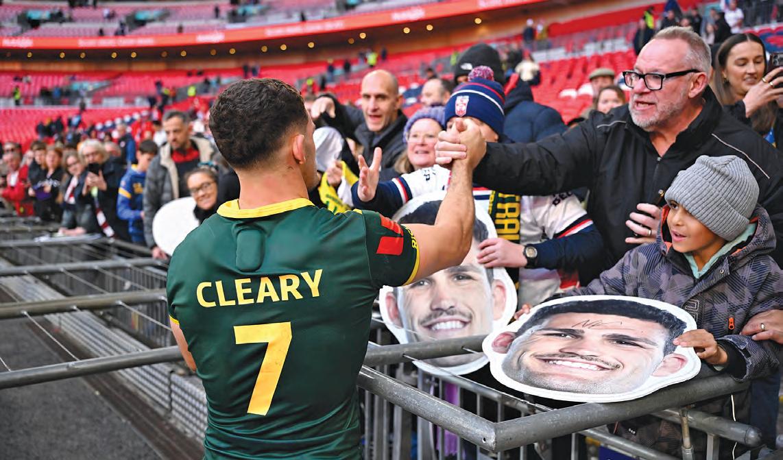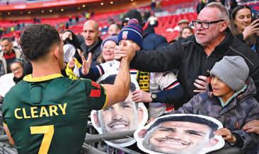 ! Cleary in hot demand: He may be a long way from home but Nathan Cleary is still feeling the love of footy fans. There were plenty of signs directed at Cleary in the crowd at Wembley for the Australia v England Test last weekend, while the Panthers co-captain was in hot demand after the game when it came to autographs and photos.
