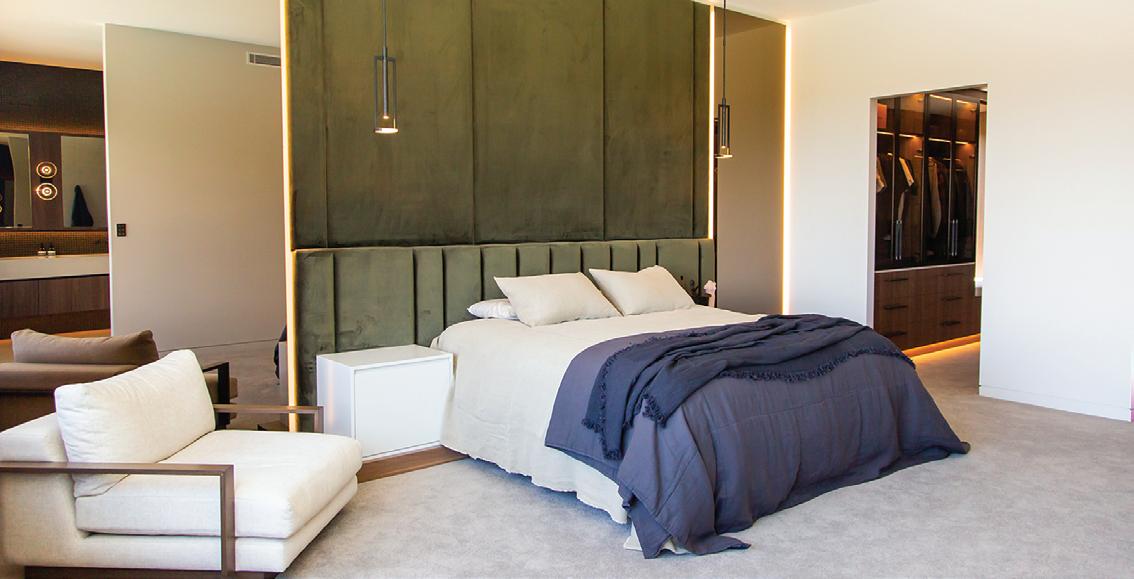 “The combination of natural materials and man-made furnish ings create a dreamy atmosphere throughout the spaces while bronze fixtures, timber and ambient LED lighting creates a luxurious look but still allows the home to feel inviting.”