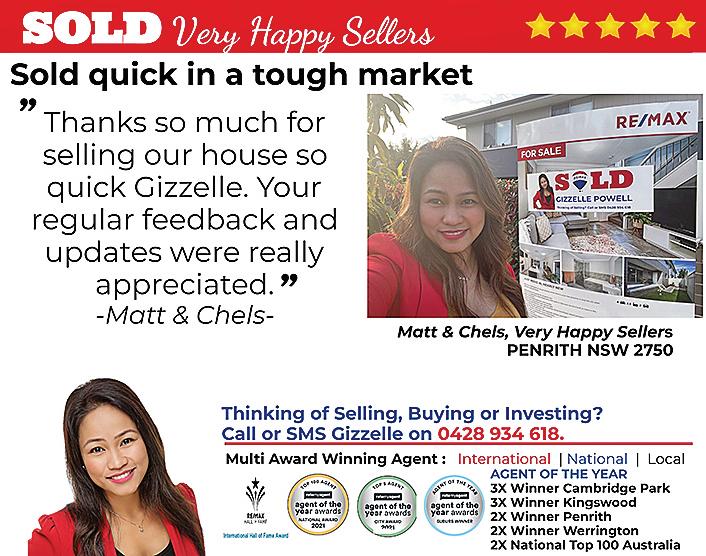 Western Property Magazine 21www.facebook.com/westernpropertymag NOBODY IN THE WORLD SELLS MORE REAL ESTATE THAN RE/MAX.® Book your FREE Appraisal now with one of our Winning Team on 4732 6007What’s your Property worth? PROPERTY LAUNCH: Saturday, 15th October, 2022 Open Home: Sat, 10:30-11am Magnificent Home In A Great Location Open Home: Sat, 11:15-11:45am Location, Location, Location Open Home: Sat, 2:30-3pm Fully Renovated Just Move In Open Home: Sat, 9:30-10am GIZZELLE POWELL M: 0428 934 618 E: gizzellepowell@remax.com.au GIZZELLE POWELL M: 0428 934 618 E: gizzellepowell@remax.com.au GIZZELLE POWELL M: 0428 934 618 E: gizzellepowell@remax.com.au GIZZELLE POWELL M: 0428 934 618 E: gizzellepowell@remax.com.au 40 Rivendell Cres, Werrington Downs 178 Lakeside Parade, Jordan Springs 24 Landy Avenue, Penrith12 Carnation Ave, Claremont Meadows Just Listed Just Listed Property Launch Just Listed WW46731 1 1 2+ 1+ 4 3 Office: 233 High Street, Penrith NSW 2750 LITSA MELETI M: 0466 969 164 E: litsameleti@remax.com.au PETER PARKER M: 0408 432 998 E: peterparker@remax.com.au Registering 2025 Land area 850-890m2 Home seekers and Investors Put and Call Option Queensland Dubbo Land 4 3 2 1.5 2+ 2+