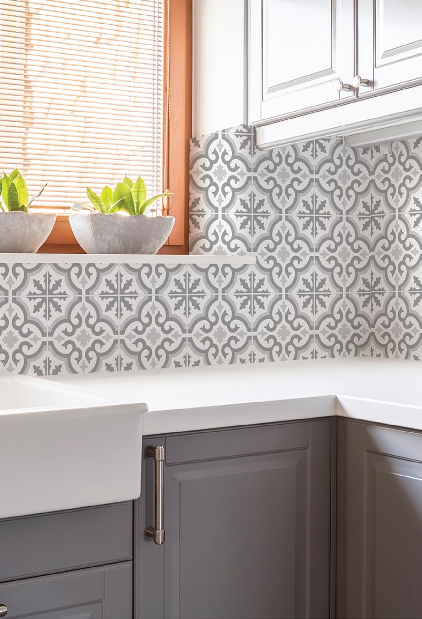 Tile-themed wallpaper and its simplified, struc tured design is on trend. Geometric arrangements with monochrome colour schemes offer pattern and routine, bringing a sense of tradition and comfort to rooms.