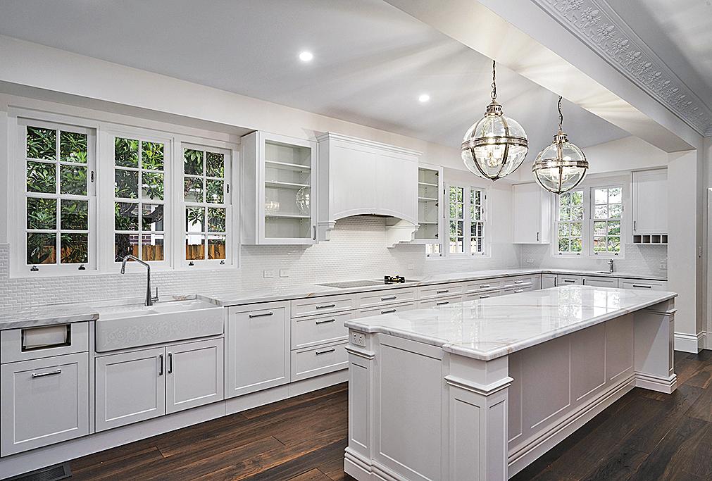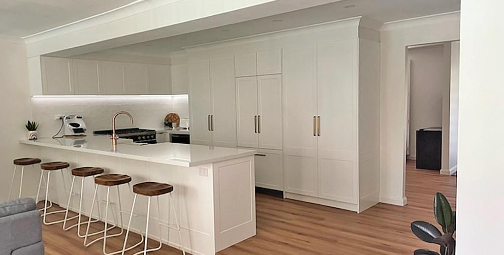 • Miele oven, gas cooktop, rangehood, built-in microwave oven and dishwasher plus striking Parisi tapware, tinted mirror splashback and Caesarstone benchtop centrepiece