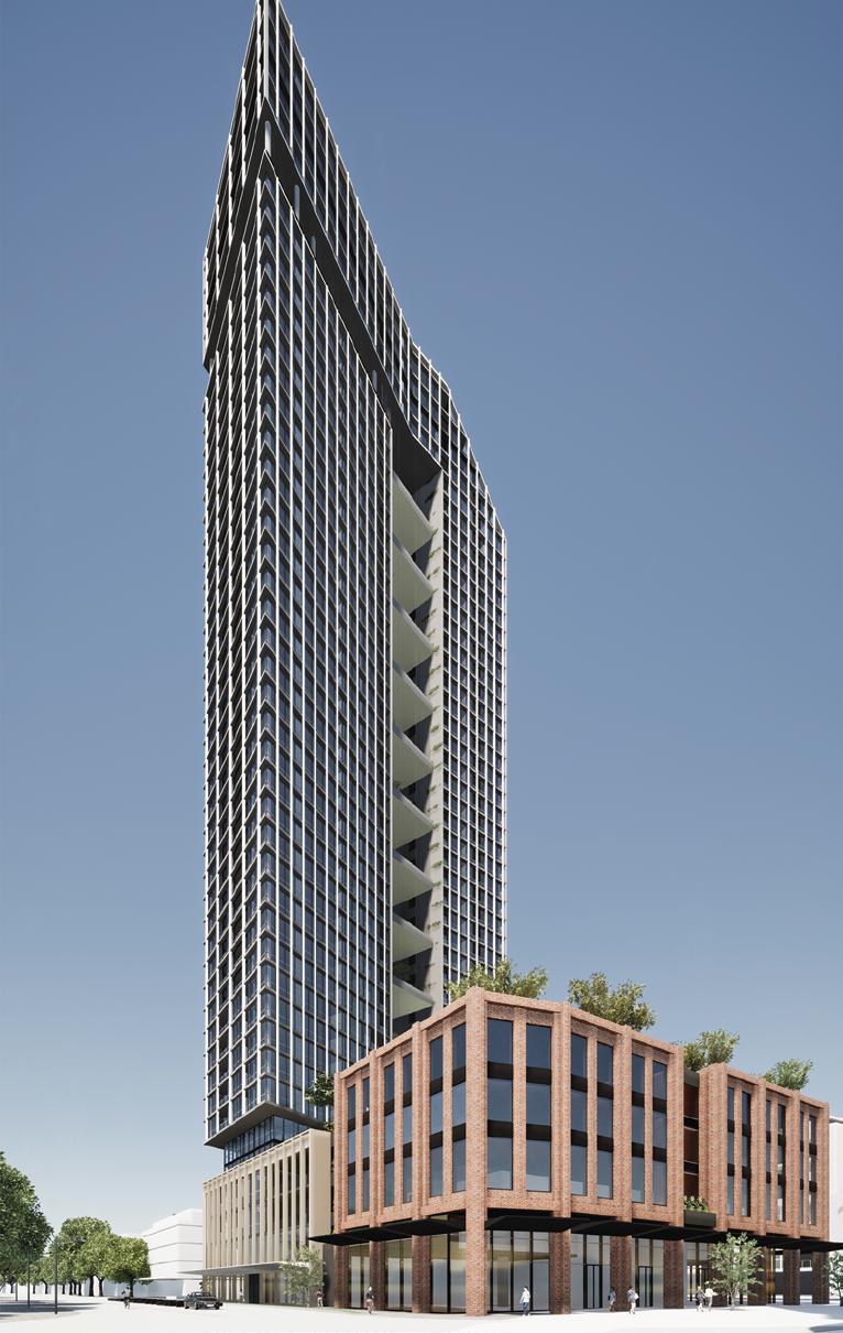 Undergoing several amendments over the years the applicant was still seeking to construct a part five, part 44-storey mixed use development with four levels of partially sleeved parking and one level of basement car parking.
