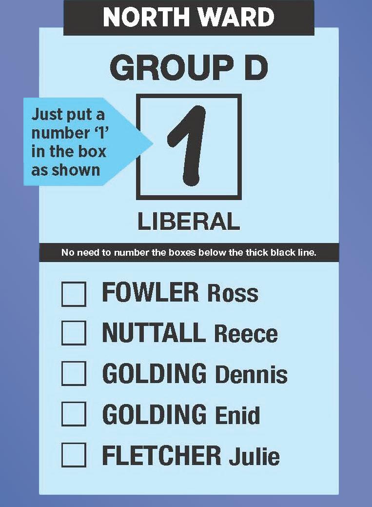 In the North Ward there is current Councillors John Thain leading a Labor ticket and Ross Fowler leading the only Liberal ticket, Shafaq Jaffery leading a Greens ticket, and