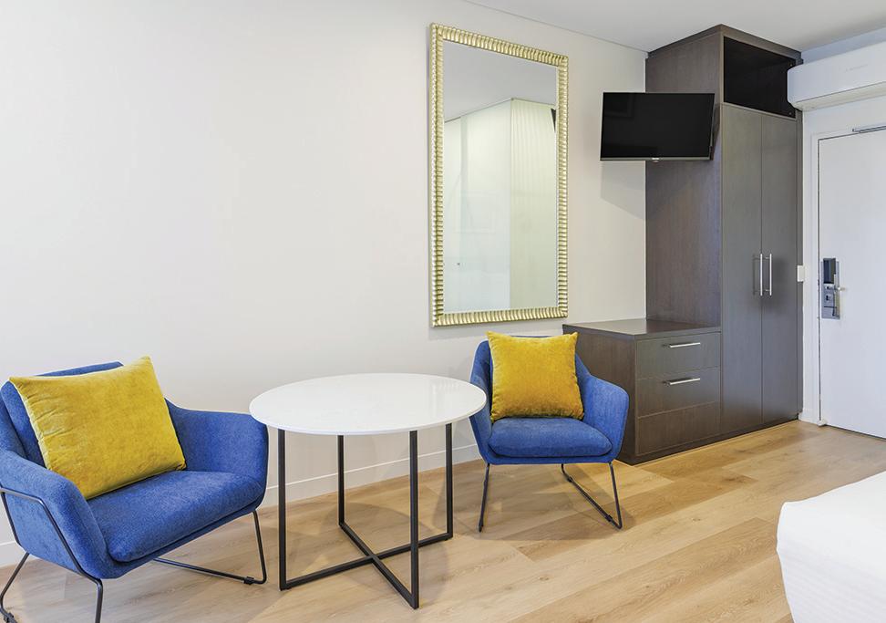 Located on the bustling Collins Street, this budget-friendly hotel offers heritage charm while still having all the mod-cons –including good wi-fi and TVs with streaming capabilities.