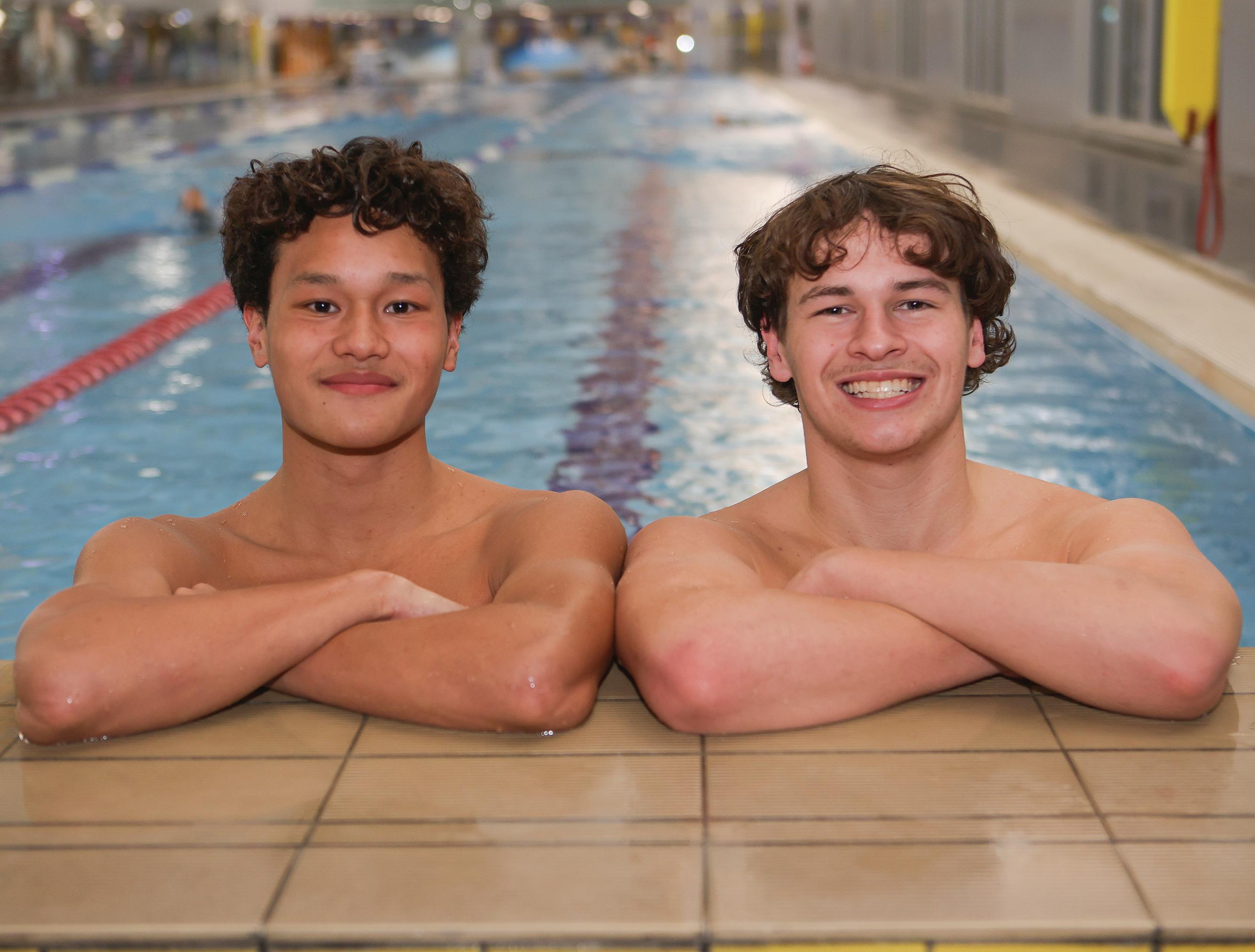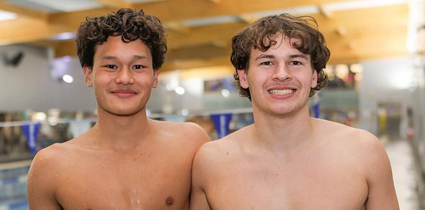 18-year-old Sylas Phillips (right) and 17-year-old Malik Amin (left) will travel to Brisbane next week to compete at the 2024 Australian Swimming Trials, which will serve as the sole selection meet for the Dolphins Swimming Team to compete in Paris.