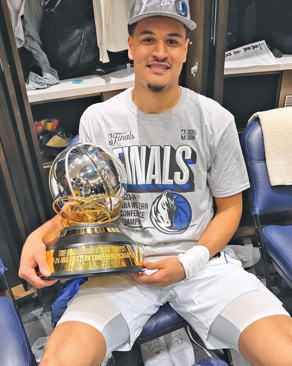 Penrith basketballer Josh Green with the NBA Western Conference Finals trophy.