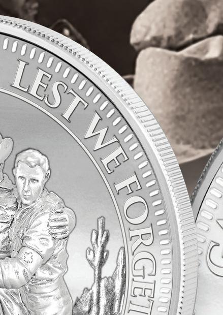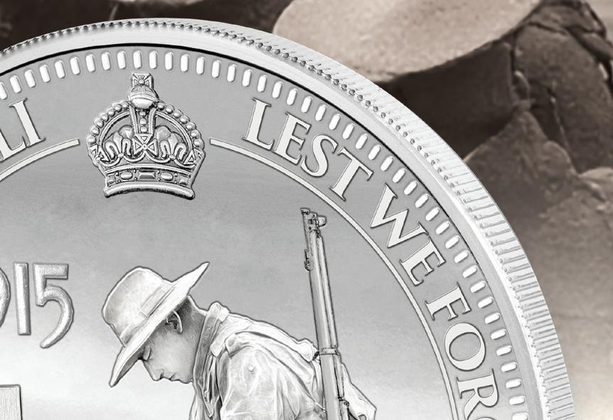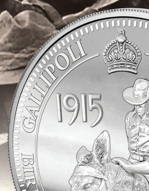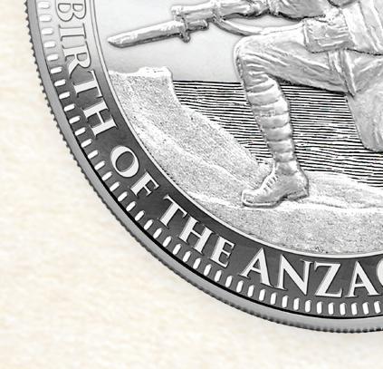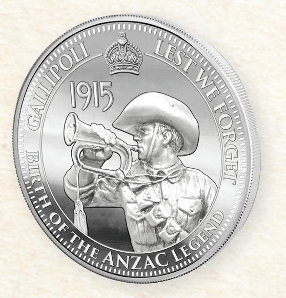 e Anzac Legend was born on 25 A manifested itself every day of eight months of crushing combat at Gallipoli. Although there was no military victory, the Australian and New Zealand troops deployed there displayed great courage, endurance, initiative, discipline, and mateship. Such qualities came to be seen as the Anzac Spirit. Born of egalitarianism, mutual support, larrikinism and a healthy disrespect for authority, the Anzac spirit rejected unnecessary restrictions, possessed a sardonic sense of humour, was contemptuous of danger, and proved itself the equal of anyone on the battlefield. A nation-defining gestalt, that sees many Australians today still invoke the Anzac spirit in times of conflict, danger and hardship. e Bradford Mint is proud to pay tribute to those brave troops who stormed Gallipoli and gave birth to the Anzac Legend in this .999 pure silver commemorative set.