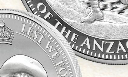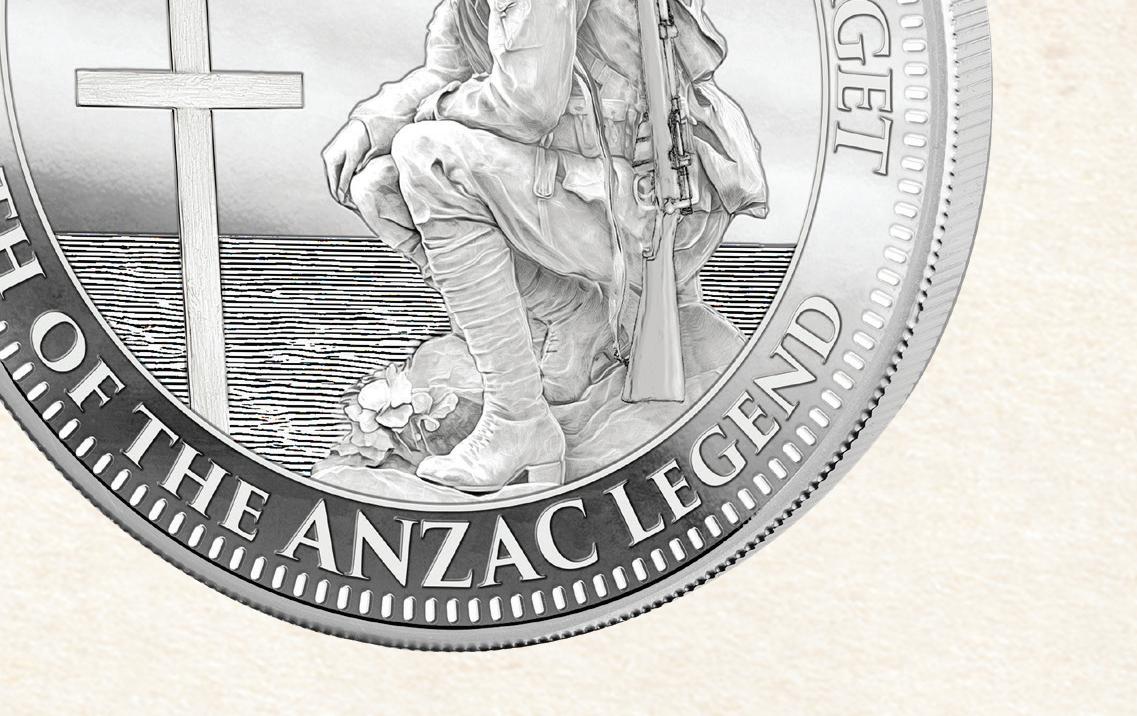 Each commemorative features a finely etched, raised relief image of an Anzacs - from a bugler calling his country to arms to an exhausted, sur viving digger mourning the loss of good mates.