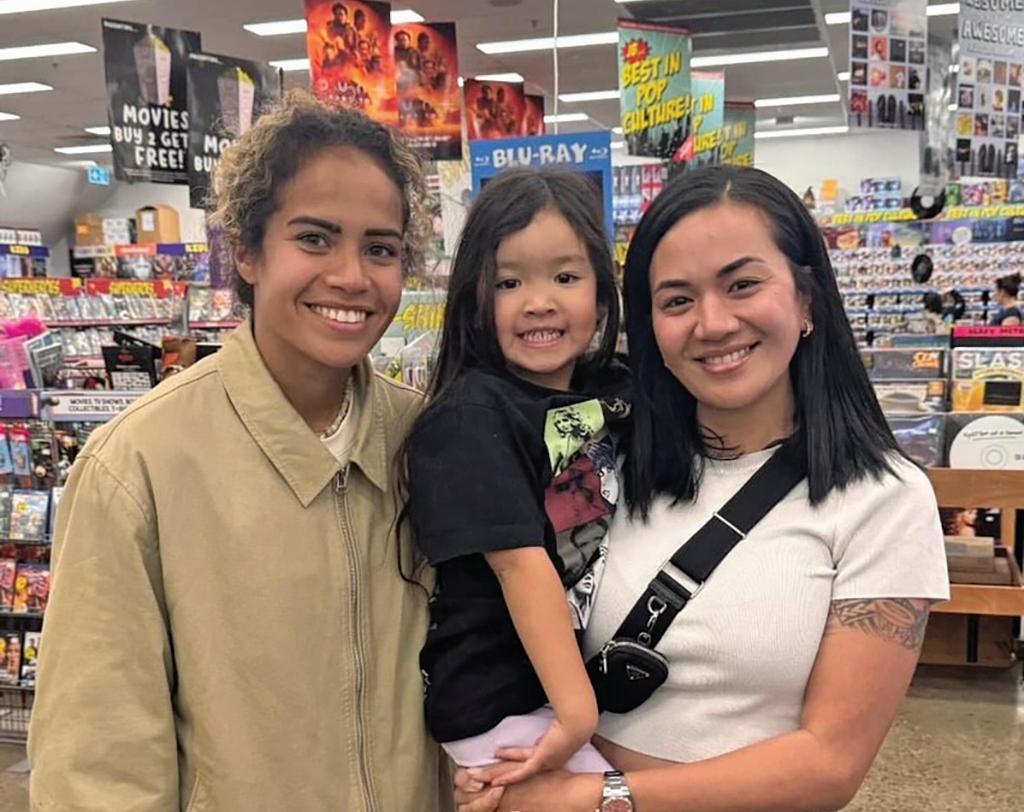 ! Spotted: Matilda Mary Fowler, who is also Nathan Cleary’s partner, doing some shopping at Penrith Homemaker Centre last week – and happily posing with locals.