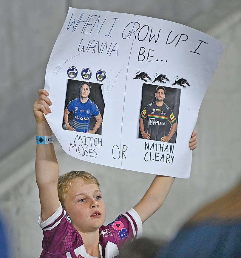 ! Spotted: This young fan at CommBank Stadium last Friday night having a bet each way in terms of his hero player.