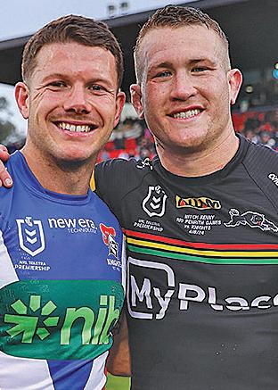 Injured fullback Dylan Edwards watching Penrith’s win over Newcastle last Sunday from the coach’s box, while James Fisher-Harris was at the Plaza last Thursday.
