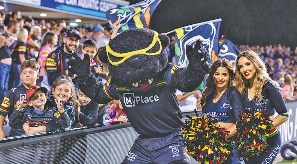 ! Spotted: The Pantherettes with Panthers mascot Claws enjoying a strong reception from the crowd at BlueBet Stadium last Friday night.