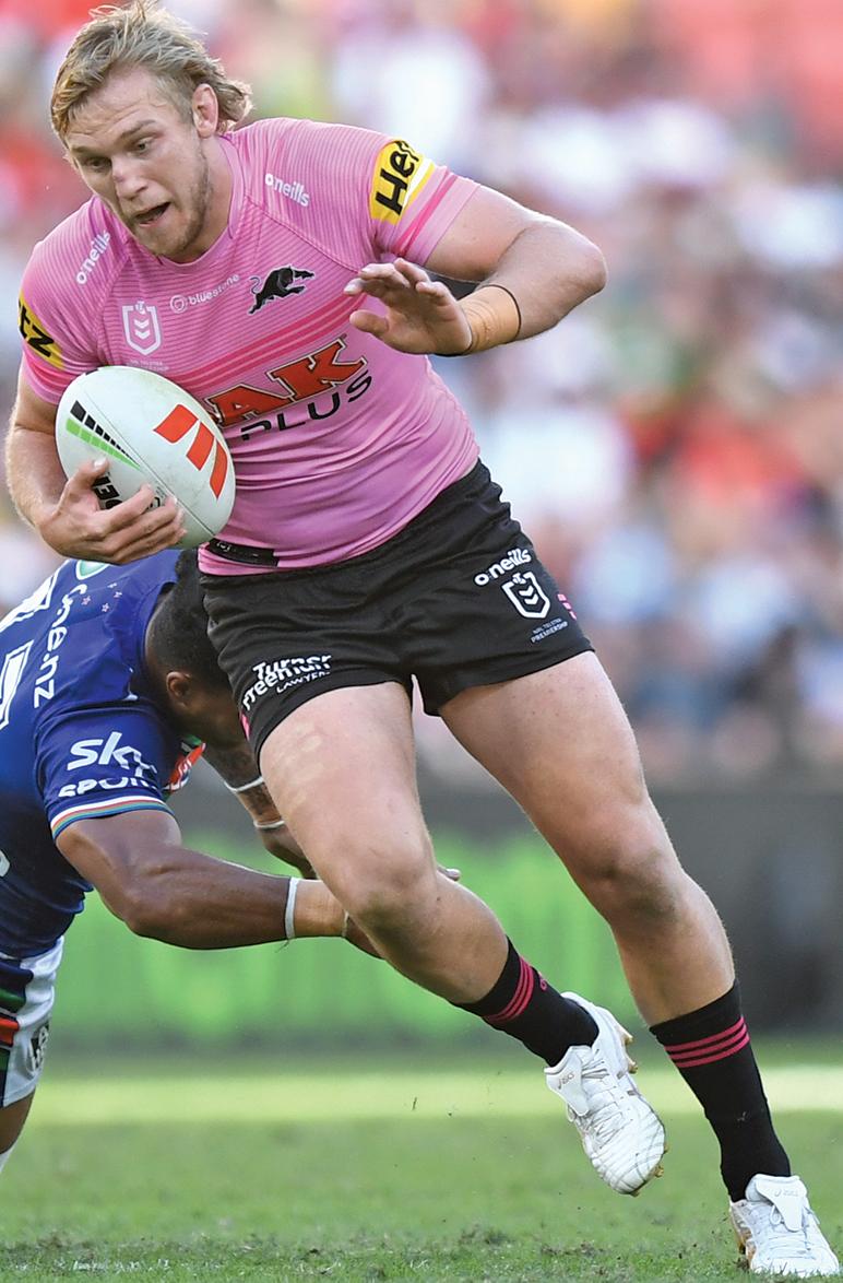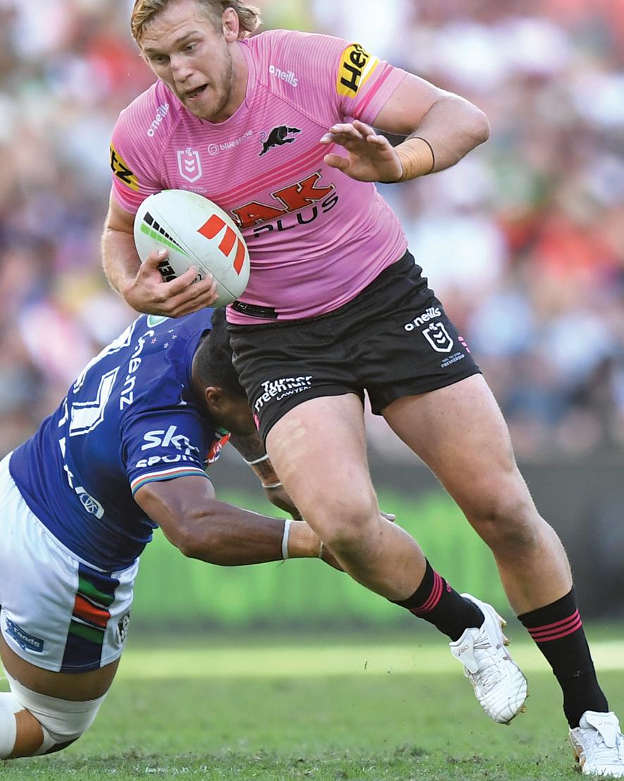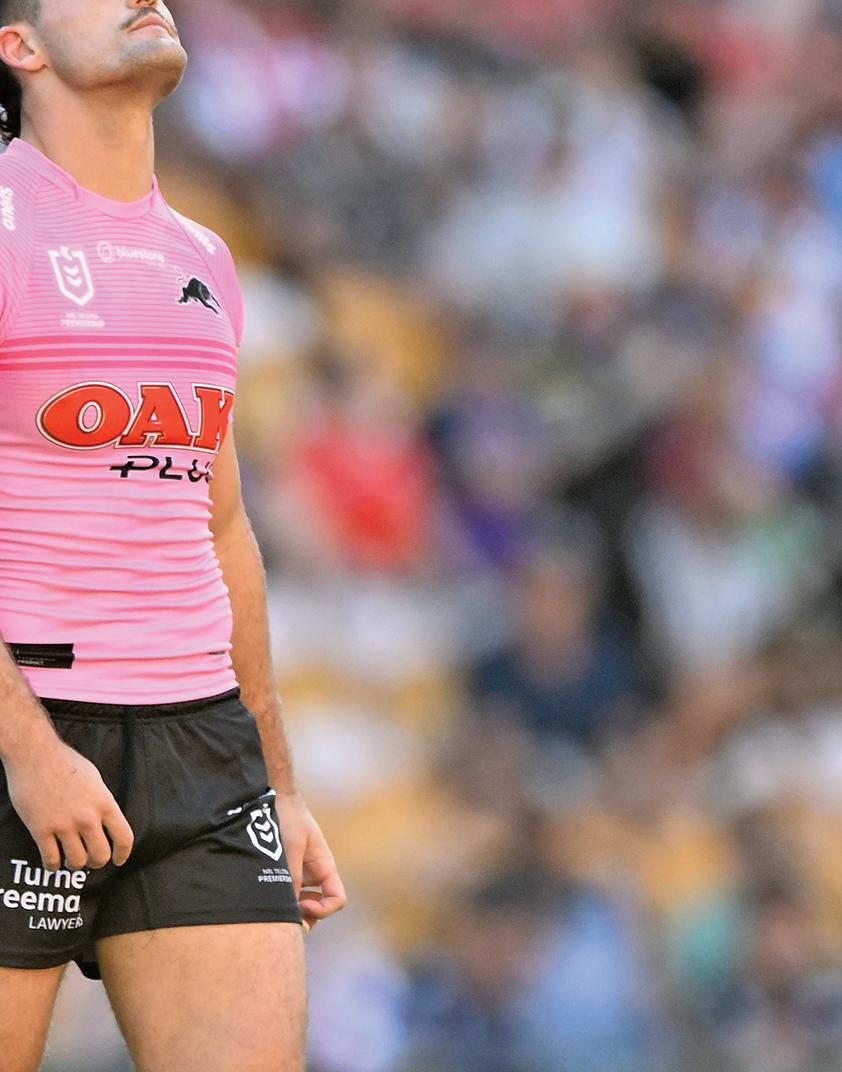 PANTHERS 1 Dylan Edwards 10 James FIsher-Harris 2 Sunia Turuva 11 Scott Sorensen 3 Tyrone Peachey 12 Zac Hosking 4 Stephen Crichton 13 Isaah Yeo 5 Brian To’o 14 Soni Luke 6 Jarome Luai 15 Lindsay Smith 7 Nathan Cleary (c) 16 Spencer Leniu 8 Moses Leota 17 Jaeman Salmon 9 Mitch Kenny 18 Jack Cogger 19 Luke Garner ROOSTERS 1 James Tedesco (c) 10 Lindsay Collins 2 Corey Allan 11 Angus Crichton 3 Joseph-Aukuso Suaalii 12 Nat Butcher 4 Billy Smith 13 Victor Radley 5 Jaxson Paulo 14 Drew Hutchison 6 Joseph Manu 15 Fletcher Baker 7 Luke Keary 16 Sitili Tupouniua 8 Jared Waerea-Hargreaves 17 Matt Lodge 9 Brandon Smith 18 Jake Turpin 19 Naufahu Whyte Brought to you by ABC 702 2GB 873 CHANEL 9 FOX LEAGUE BROADCAST « the western weekender • extra time 33 Friday, May 12, 2023 WATCH IT LIVE ON THE BIG SCREENS in THE BASEMENT 51141
