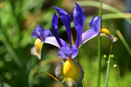 Rhizomatous iris (Iris spp.) are one of the easiest bulbous plants for the garden. There are many species including: Yellow Flag Iris, Siberian Iris, Blue Flag Iris, Japanese Iris, Crested Iris and Black Iris. There are 6- to 8-inch dwarf types and 3- to 4-ft tall types. They come in all colors (solid and bicolors) except red. Most species require a welldrained soil and only an occasional fertilization. They can be planted in the fall or spring depending on the availability of the rhizomes. Plant them with 1 to 2 inches of soil covering the rhizomes. They grow best in full sun, but do quite well in light shade.Rhizomatous Iris tend to grow and perennialize rapidly and need to be separated every 4 to 5 years.
