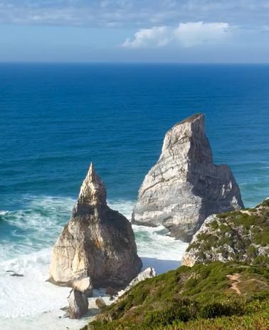One of Portugal’s most wild and stunning beaches is Praia da Ursa, which means Bear Beach, a reference to the two beautiful rock formations just off the coast. Located in Sintra Cascais Natural Park and only accessible by a 30-minute hike, Praia da Ursa rewards visitors with a beautifully wild setting, rocky cliffs and few crowds.