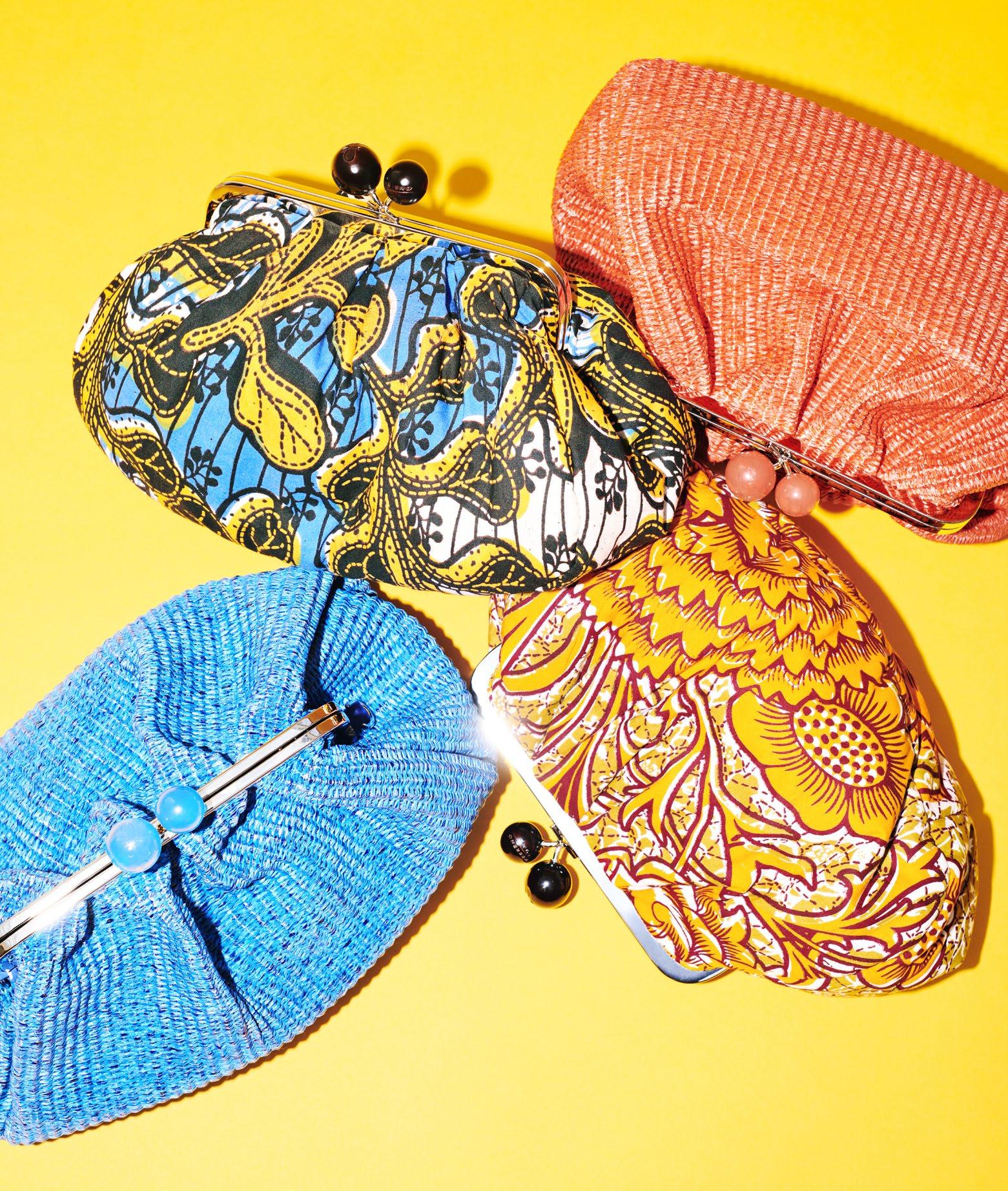 FROM LEFT TO RIGHT: Dress BENNY Trousers FAUSTA Hat TIMORE Pasticcino Bag AISHA Shoes POTENZA — Hat OPOSSUM Shoes ORLAYA — Pasticcino Bag PALMA Pasticcino Bags FORTUNA