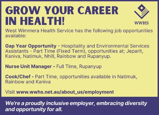 Page 50 Wednesday, November 2, 2022www.theweeklyadvertiser.com.au sPorT Libby Price on Country Today Weekdays from noon on Phone (03) 5381 6200 You want the best... choose Skillinvest! To apply for these jobs visit www.skillinvest.com.au/jobs/ JOBS BOARD Placing the right people in the right organisations Skillinvest is a Registered Training Organisation – RTO Code 4192 Information Technology Traineeship –Horsham Location: Horsham, Closing date: November 8, 2022 Requirements Good oral and written communication skills Genuine desire to assist • Strong aptitude for working with computers Good organisation skills • Willingness to commit to work and study Willing to obtain a Police Check and Working with Children Check • Evidence of COVID 19 certificates may be required For more information contact Chris Barber on 0427 346 655. Water Operations Traineeship –Horsham Location: Horsham, Closing date: November 8, 2022 This is a special measure position (VARP) for candidates between the ages of 15-24 years. Requirements • Work outdoors in all kinds of weather Able to undertake manual work • Enjoy practical and mechanical activities Willingness to commit to work and study • Proof of COVID 19 vaccination may be required For more information contact Shane Cross on 0418 564 890. Business Administration Traineeship –Horsham Location: Horsham, Closing date: November 8, 2022 Requirements Good oral and written communication skills • Aptitude for working with computers Good organisation skills • Willingness to commit to work and study • Evidence of COVID 19 certificates may be required For more information contact Chris Barber on 0427 346 655. Innovation Equine Program –Consultant – Horsham Location: Horsham, Closing date: November 4, 2022 Requirements Demonstrated experience in a similar role • Driver’s Licence Working with Children’s and Police Check High level of communication and interpersonal skills • Highly developed organisational, planning, administration, negotiation and leadership skills To attain a copy of the position description, please email tamira.cullinan@skillinvest.com.au Innovation Equine Program – Project Coordinator – Horsham Location: Horsham, Closing date: November 4, 2022 Requirements Demonstrated experience in a leadership position Proven experience working in the Employment Services Industry • Working with Children’s and Police Check and driver’s Licence • High level of communication and interpersonal skills • Highly developed organisational, planning, administration, negotiation and leadership skills Able to work commit to part time work hours • 0.9 for first 6 months of program • 0.6 for following 12 months of program To attain a copy of the position description, please email tamira.cullinan@skillinvest.com.au