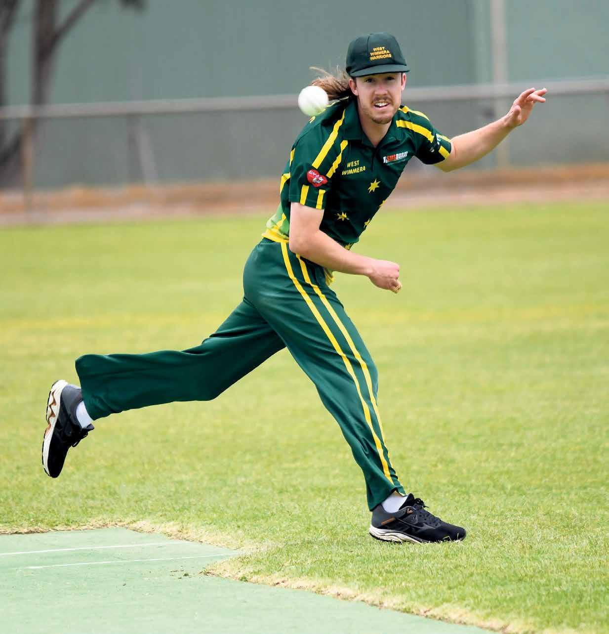 West Wimmera Warriors tweeker Liam Preston sends a spinner down the wicket in a Horsham