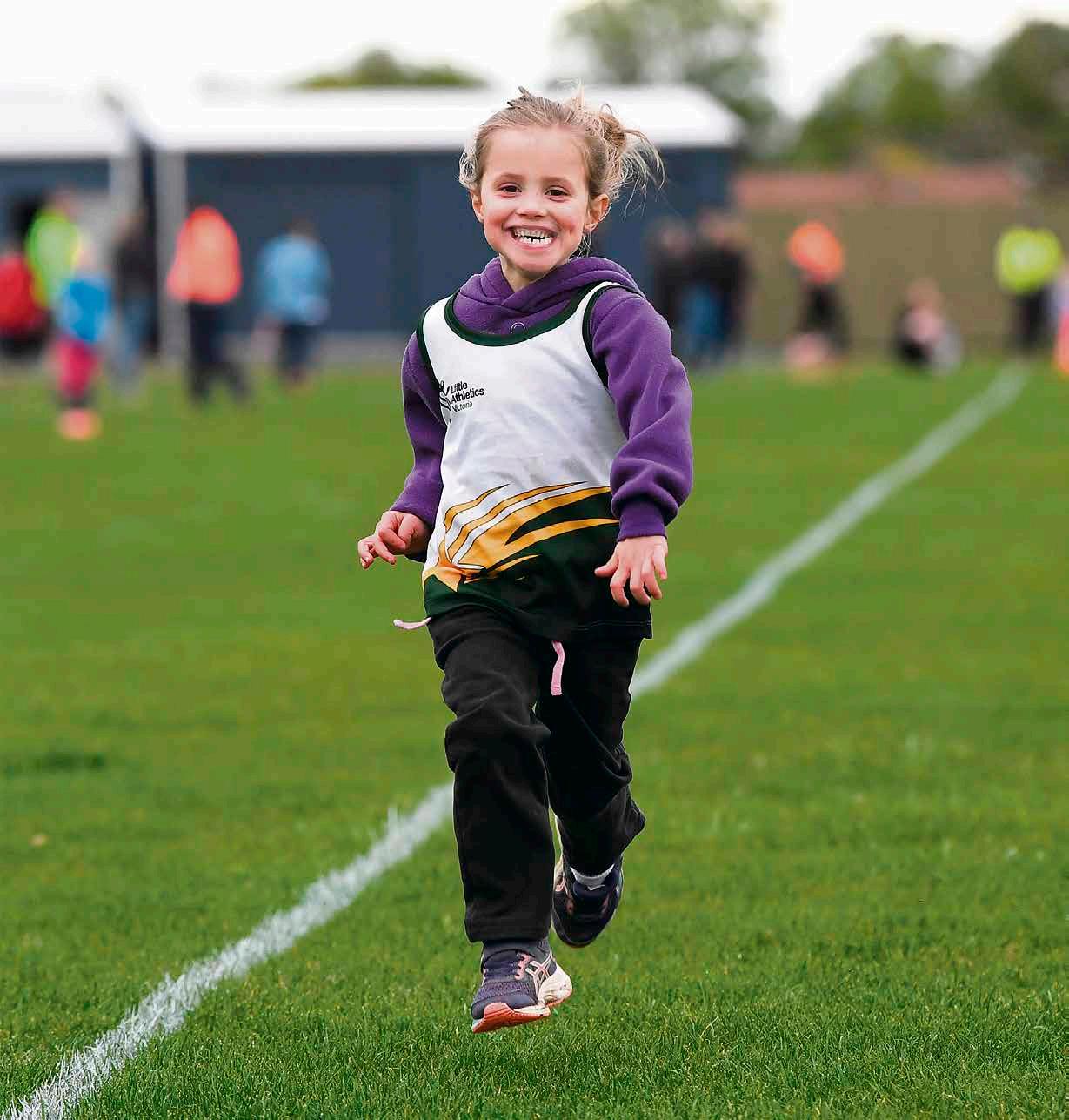 Greta Schulz, 5, is all smiles as she runs the track at a Horsham Little Athletics come-and-try night. Horsham Little Athletics competition season begins today at Dudley Cornell Park,