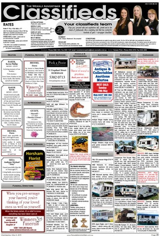 WEEKLY ADS Minimum of $13.20 for 12 words and then $4.40 per 4 words thereafter. DISPLAY ADS $9.90 per single column centimetre, min. four centimetres. MULTI MEDIA As part of an all-inclusive package your advertisement will also appear on the digital version of The Weekly Advertiser located at www.theweeklyadvertiser.com.au which is promoted via Facebook on a weekly basis.