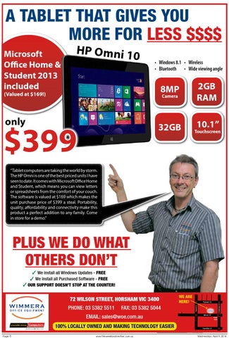 “Tablet computers are taking the world by storm. The HP Omni is one of the best priced units I have seen to date. It comes with Microsoft Office Home and Student, which means you can view letters or spreadsheets from the comfort of your couch. The software is valued at $169 which makes the unit purchase price of $399 a steal. Portability, quality, affordability and connectivity make this product a perfect addition to any family. Come in store for a demo.”
