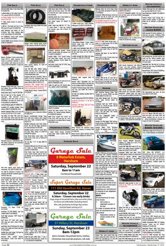 Super Garage Sale 111 Old Hamilton Rd, Haven Saturday, September 22 8.30am - 12noon (no early birds)