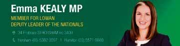 She said after Lowan voters gave their strong support for Nationals’ policies, she would continue to work ‘tirelessly’ to ‘deliver’ on party com mitments and campaign for their sup port from the returned Labor govern ment.