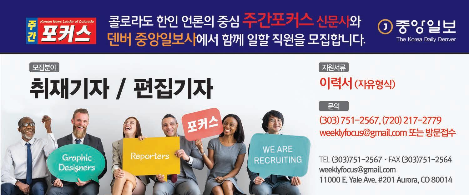 11000 E. Yale Ave. #30, Aurora, CO 80014 www.focuscolorado.net www.focuscolorado.net / e-신문 weeklyfocus focuscolorado.net 핫딜