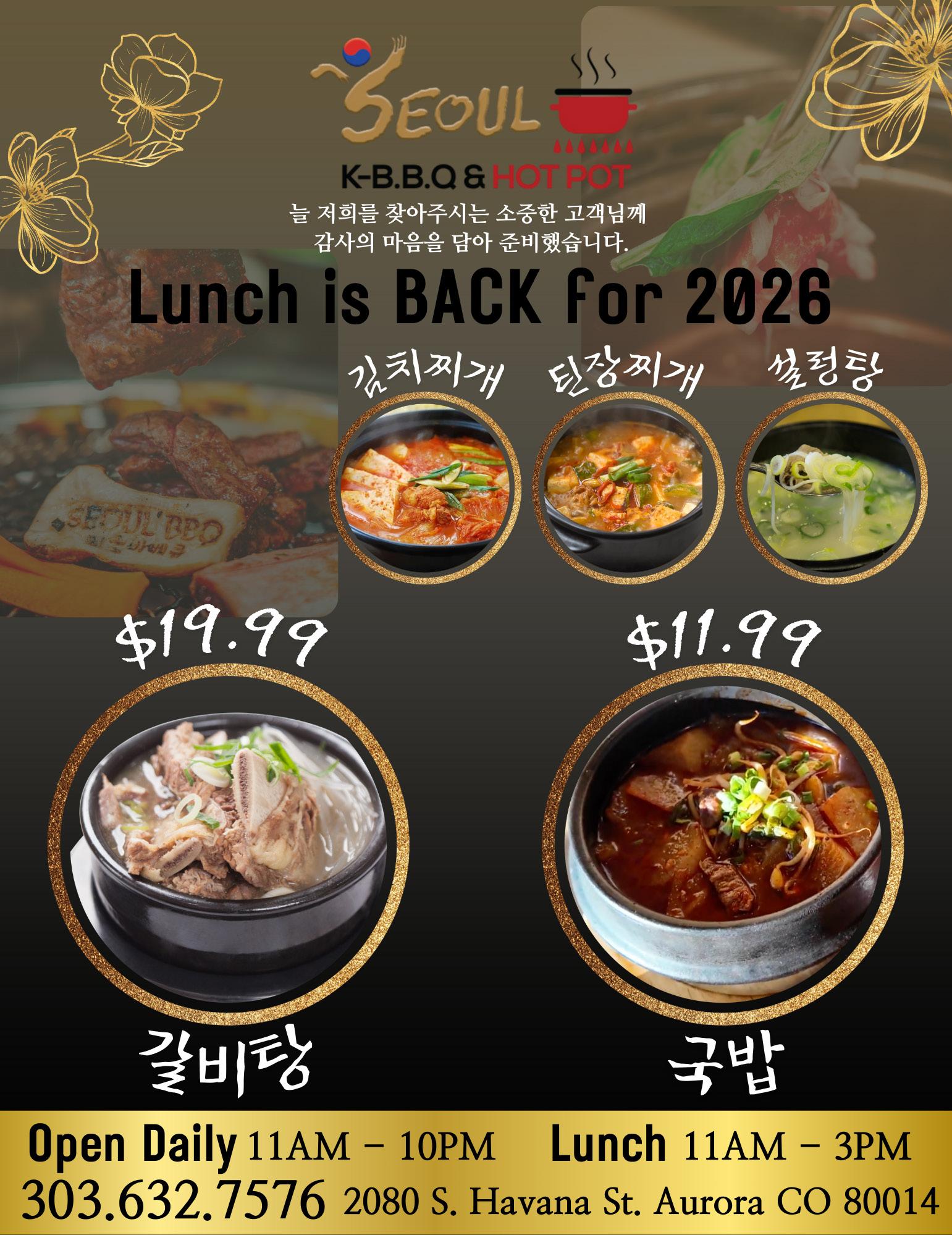가격이다. 런치는 오전 11시~오후 3시, 디너는 오 후 3시~11시까지. 주소는 1225 Federal Blvd, Denver, CO