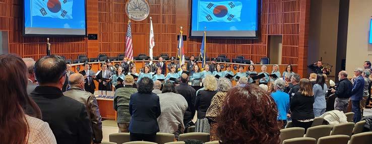 이날 행사에는 1백여명이 넘는 관련 인사들이 참석했으며, 수여자들의 희생에 대한 감사와 경의의 마음을 담아 콜로라도 한인합창단과 함께 한국과 미국 애국가를 부르고 있다.