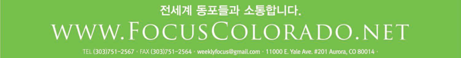 11000 E. Yale Ave. #201, Aurora, CO 80014 11000 E. Yale Ave. #30, Aurora, CO 80014 www.focuscolorado.net www.focuscolorado.net / e-신문 weeklyfocus focuscolorado.net 핫딜