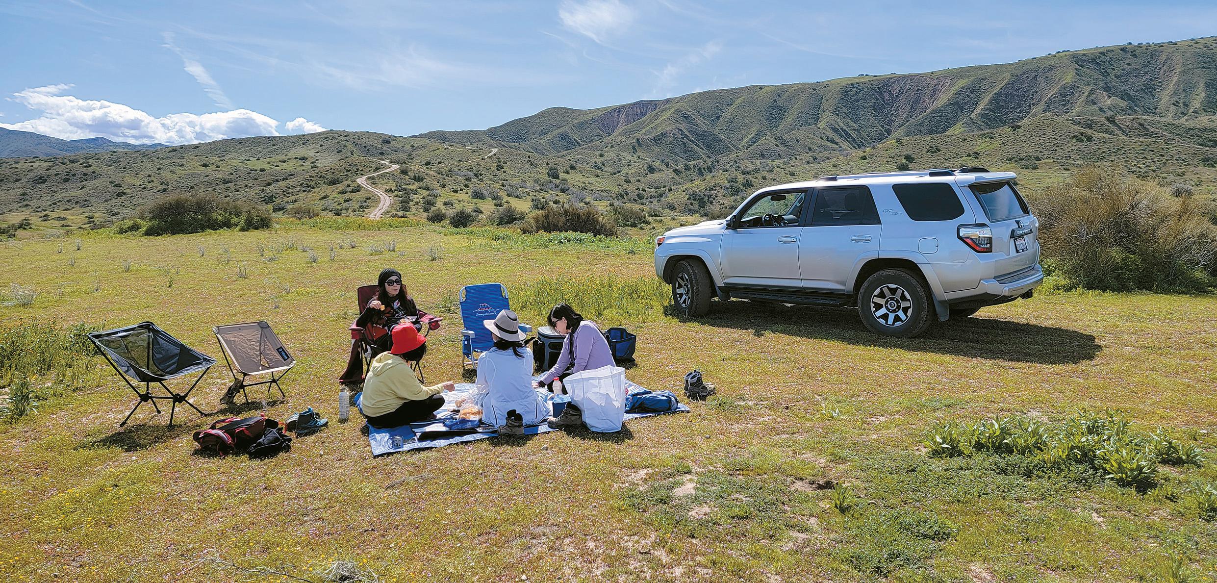 물결로 넘쳐나 는 카리조 평원 칼리엔테 산등성 이 따스한 햇볕 아래에서 한인들이 피 크닉을 즐기고 있다