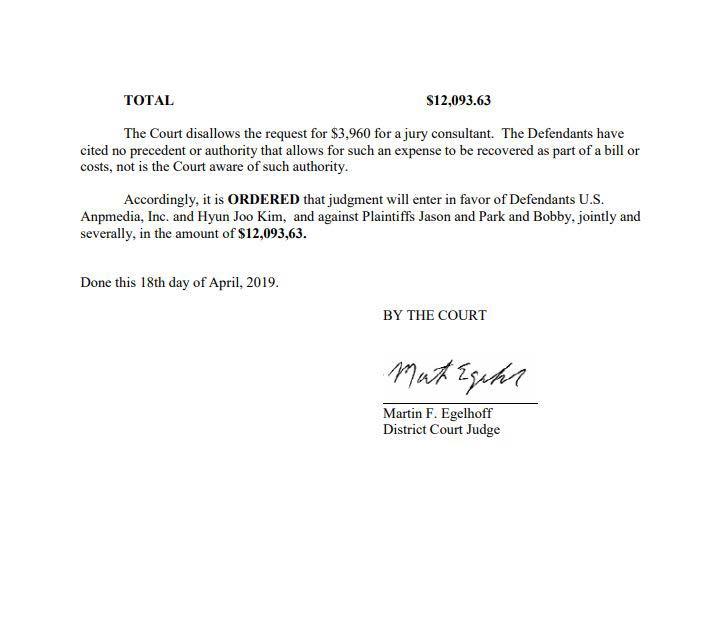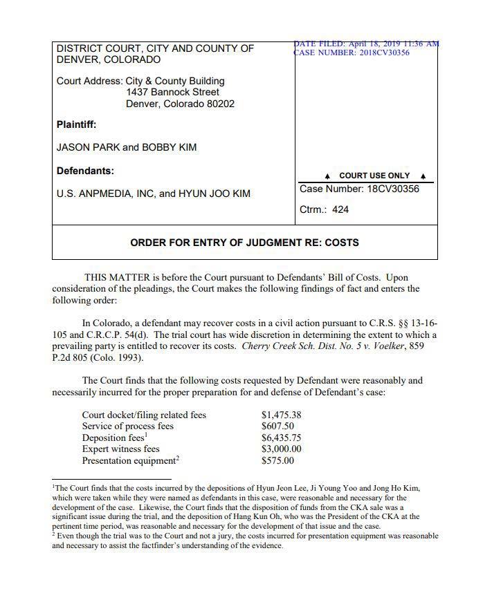 128 May 25, 2023 l Weekly Focus www.FocusColorado.net 전면광고 전 콜로라도 주 한인회장인 바비 김(82)과 박준서(60)가 주간포커스와 김현주 대표를 고소했다가 패소한 지 4년이 지났지만 현재까지도 법원에서 판결내린 금액을 갚지 않고 있다. 이들은 법원에서 판결내린 금액을 갚지도 않은 상태에서 또다시 노우회의 공금을 유용해 고소를 남발하면서 사회적 물의를 일으키고 있다. 지난 2018년 이 두 사람은 주간포커스가 자신들의 명예를 훼손했다며 고소했지만, 2019년 3월 덴버 법원은 그들의 고소 내용 6가지 전부를 기각시켰고, 오히려 주간포커스에 $12,093.63를 배상하라고 판결내렸다. 판결문을 이행하지 않는 것은 법정모독죄에 해당된다. 주간포커스에 $12,093 아직도 안갚아 노우회