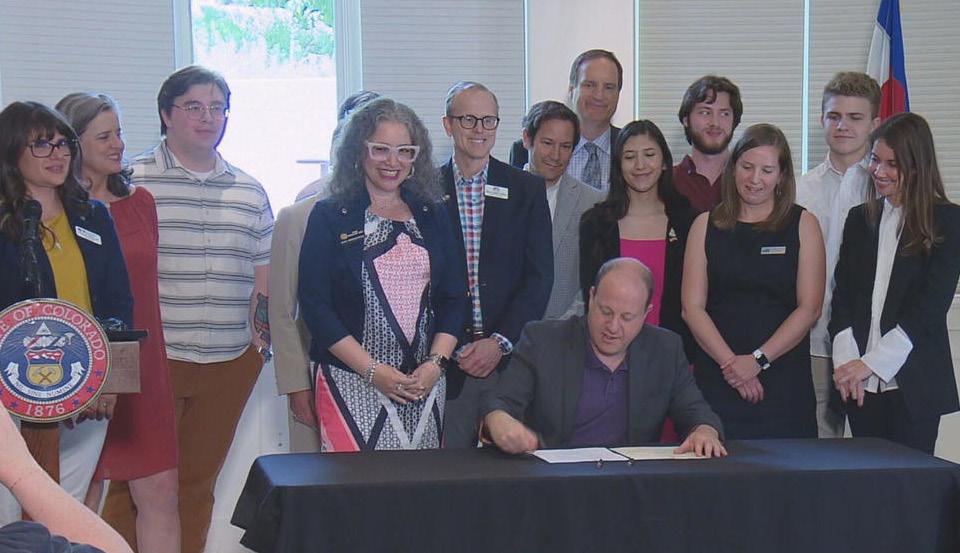 제러드 폴리스 주지사가 청소년 정신 건강을 위한 4개 법안에 서명하고 있다.