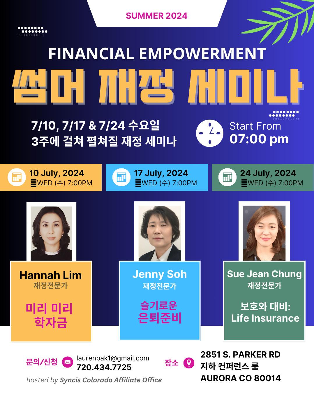 주제로 부흥회를 가진다. 교회 주소는15150 E Evans Ave Aurora CO 80014이며, 문의는 720.226.8113로 하면 된다.