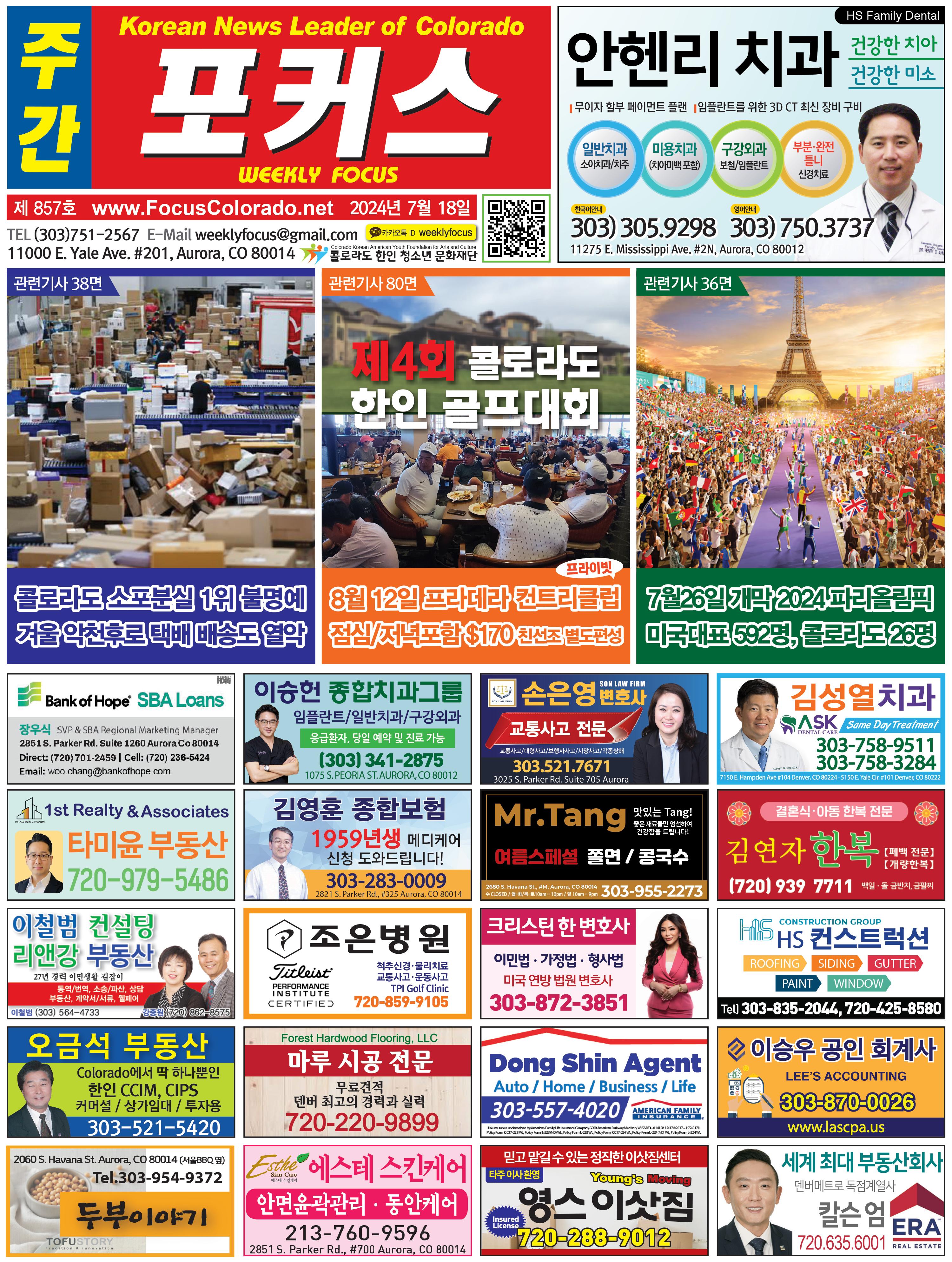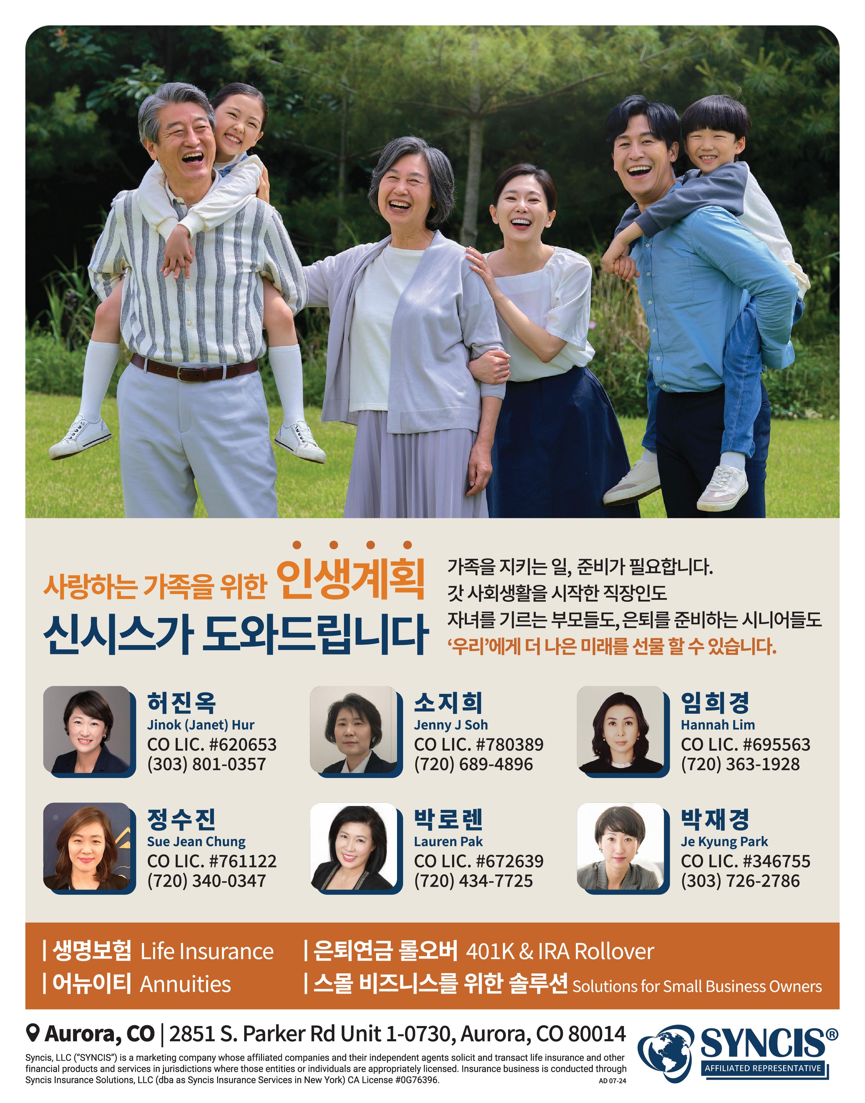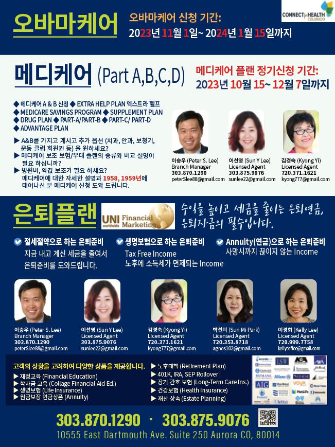주소는 11000 E. Yale Ave. #30, Aurora, CO 80014 이 며, 자세한 문의는 303.877.6935로 하면 된다.
