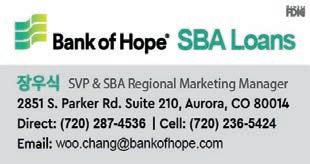 8์ 3์ผ l ์ฃผ๊ฐ ํฌ์ปค์ค ์ ๋ฉด๊ด๊ณ โข โข Bank of Hope SBA Loans * SBA Preferred Lender l bankofhope.com (Wo o Shik C ha ng) Direct Cell Email โข โข 2851 S. Parker Rd. Suite 1260 Aurora Co 80014. (720) 701 2459 SVP & SBA Regional Marketing Manager
