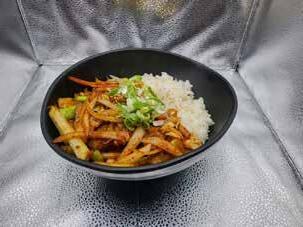 Miso soup, White Rice, Squid, Cabbage, Onion, Green Onion, Carrot, Red Pepper Powder, Sesame Seeds
