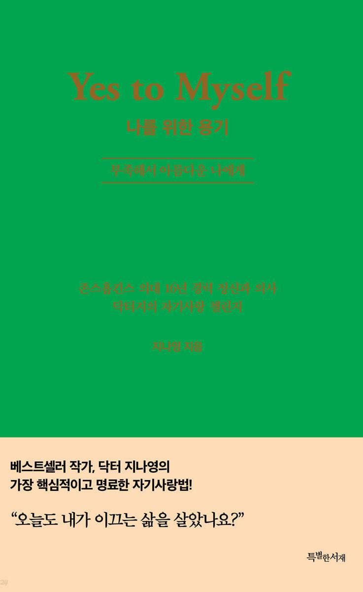 빠진 이들에게 ‘나를 위한 용기’를 내보기 를 권한다. 불행의 길에서 벗어나 행복의 길 로 전향하는 용기는 바로 ‘나를 사랑하는 용 기’다. 존스홉킨스 의대 16년 경력의 정신과 의사 지나영이 진심을 담아 출간한 〈나를 위 한 용기〉를 온전히 내 것으로 만든다면, 이 책 을 덮는 날 스스로에게 “부족하지만