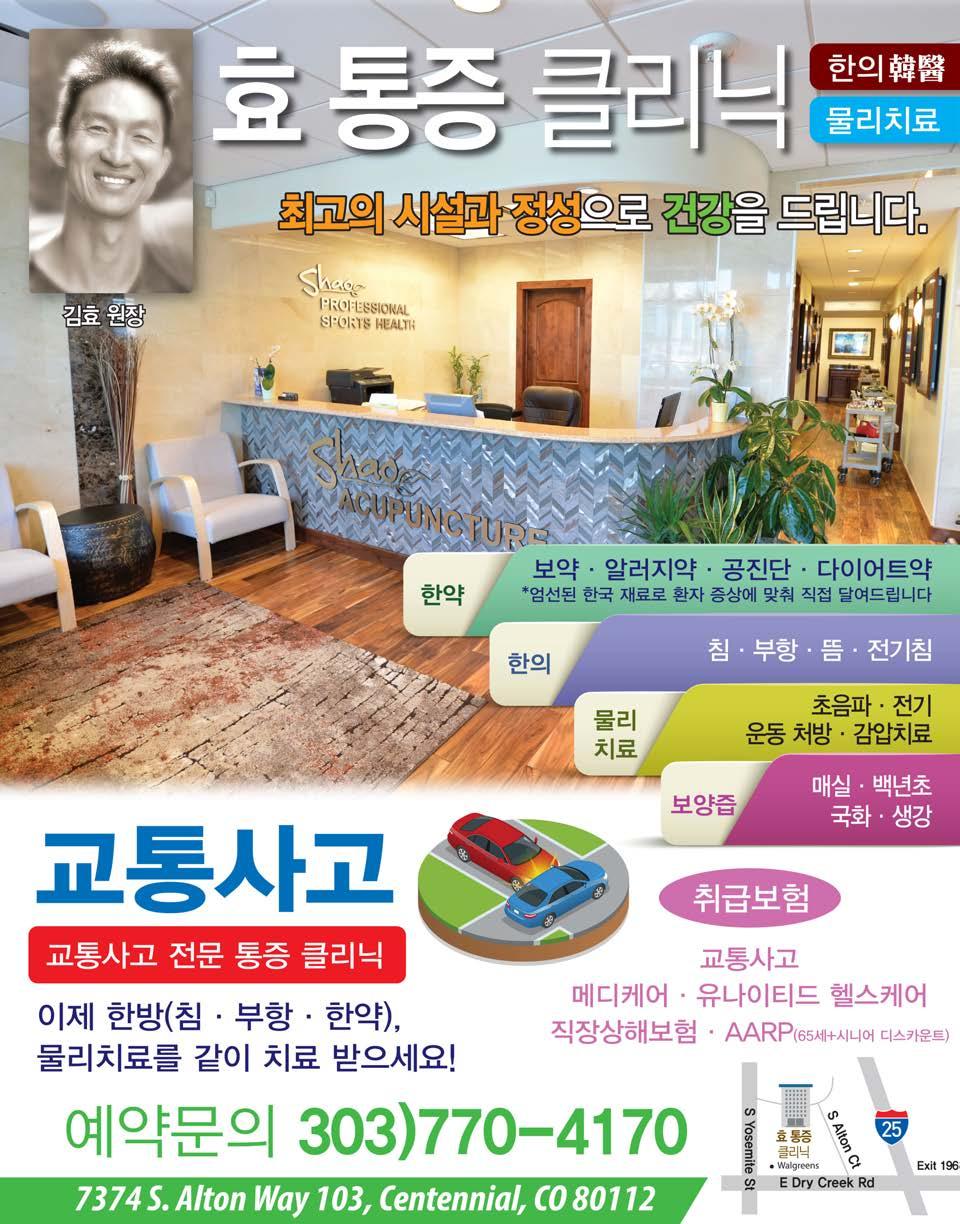 134 September 22, 2022 l Weekly Focuswww.FocusColorado.net 전면광고 교통사고 당하셨습니까?교통사고를 720.282.8050 FAX. 720.282.8051 | myi59@yahoo.com 1755 Telstar Dr. Suite 300 Colorado Springs, CO 80920 스프링스덴버 2675 S. Abilene St.Suite 235 Aurora, CO 80014 교통사고는 신분에 상관없이 보상을 받으실 수 있습니다. 무보험사고·뺑소니사고·대형참사·낙상사고교통사고·사망사고·상해사고 전직검사 출신의 풍부한 배심원 재판경험을 바탕으로 여러분의 소중한 권리를 찾을 수 있도록 최선을 다합니다.