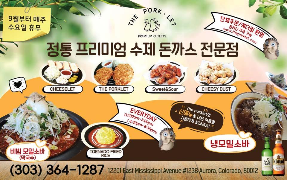 www.FocusColorado.net 72022년 9월 22일 l 주간 포커스 전면광고 온라인 주문 YGAurora.com New Management 2040 S. Havana St., Aurora, CO 80014 720-748-3003 주말에 일할 서버 모십니다 용궁