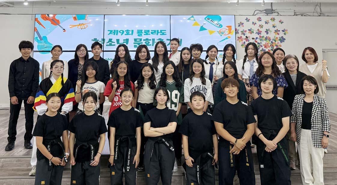 도 무한한 가능성을 증명했고, 그렇기 때 문에 심사기준도 절대적일 수 없다. 이 행사를 통해 평생 잊지 못할 추억을 만 들고, 자신의 꿈을 찾아 포기하지 않고 끝까지 도전하는 자세를 배우길 바란다. 무대 위에서 자신의 한계에 도전하고 있는 모습이 기특하기도 하고 멋져 보인 다. 필자가 지난 15년동안 청소년 문화 축제를 개최해온 이유는 이런 음악경연 을 통해 자신을 낮추는 겸손을, 무대 위 를 장악하는 자신감을, 그리고 한국사람 이라는 동질감을 심어주기 위한 것이다. 그리고 수많은 인재들을 발굴할 수 있어 서 뿌듯했다. 이번 경연에 참가한 학생들 또한 콜로라도의 숨은 인재들이었다. 이 번 무대에 섰던 27명의 친구들에게 격려 와 칭찬의 박수를 보내며, 그들의 미래를 열렬히 응원한다.