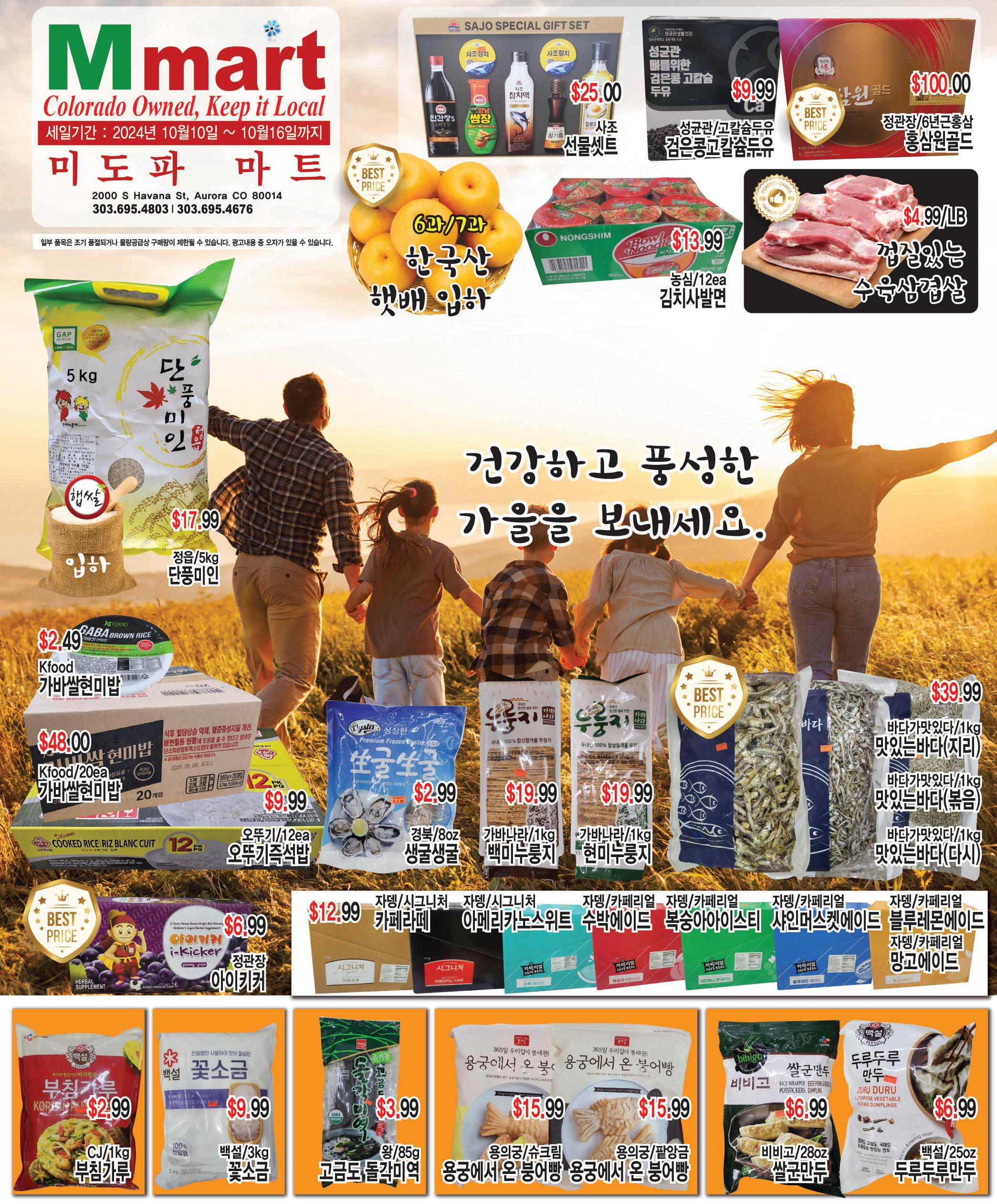 일까지 M마트에서 열린다. 전북특별자치도 군산시가 보 장하는 명품젓갈, 꽃게장, 재래김,새우젓 등 다양한 특산 품이 선보인다. M마트 주소는 2000 S Havana St #4749, Aurora, CO 80014, 전화번호는 303. 695.4676 이다.