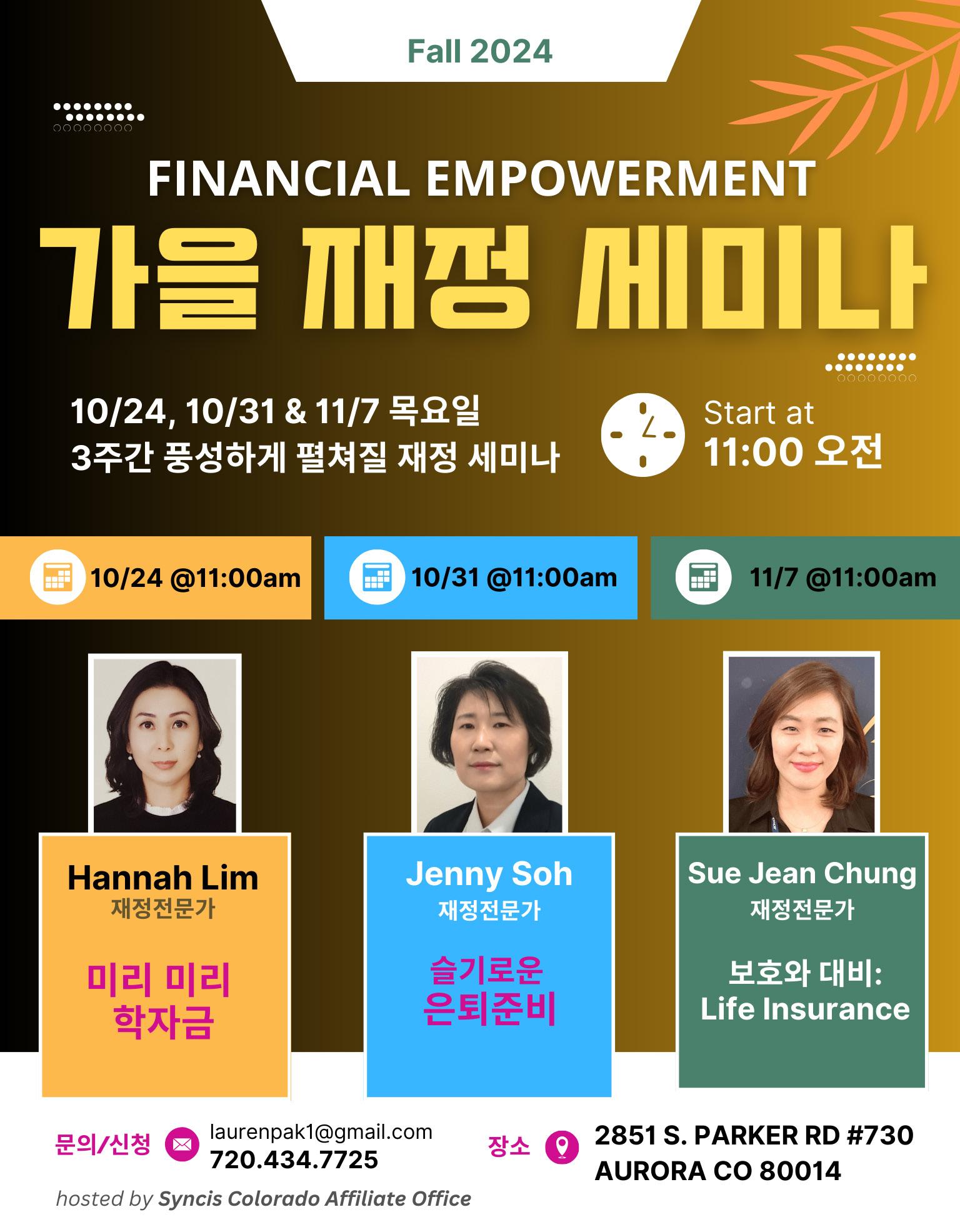 ▶장소: 주간포커스 문화센터 지하 1 층(11000 E. Yale Ave. Aurora, CO 80014)