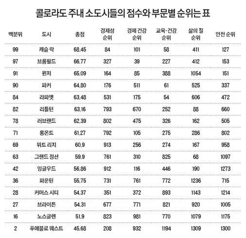 쿨(Dawson School): 사립, 유치원~12학년 ▲6위 콜로라도 스프링스 소재 더 콜로라 도 스프링스 스쿨(The Colorado Springs School): 사립, 유치원~12학년 ▲7위 손 튼 소재 스타게이트 차터 스쿨(Stargate Charter School): 공립, 유치원~12학년 ▲8