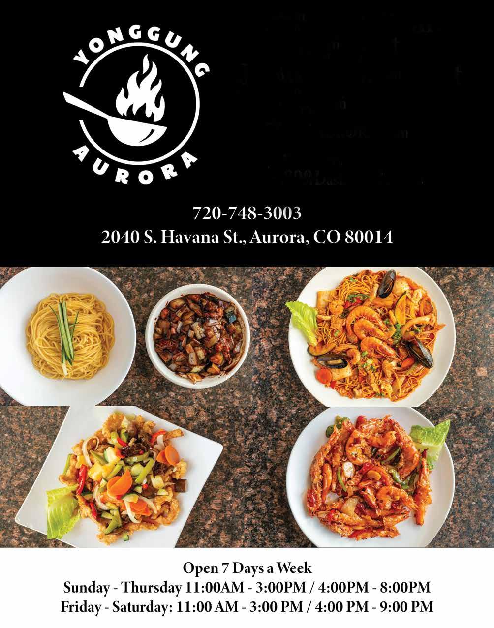 www.FocusColorado.net 72022년 10월 13일 l 주간 포커스 전면광고 온라인 주문 YGAurora.com New Management 2040 S. Havana St., Aurora, CO 80014 720-748-3003 주말에 일할 서버 모십니다 용궁