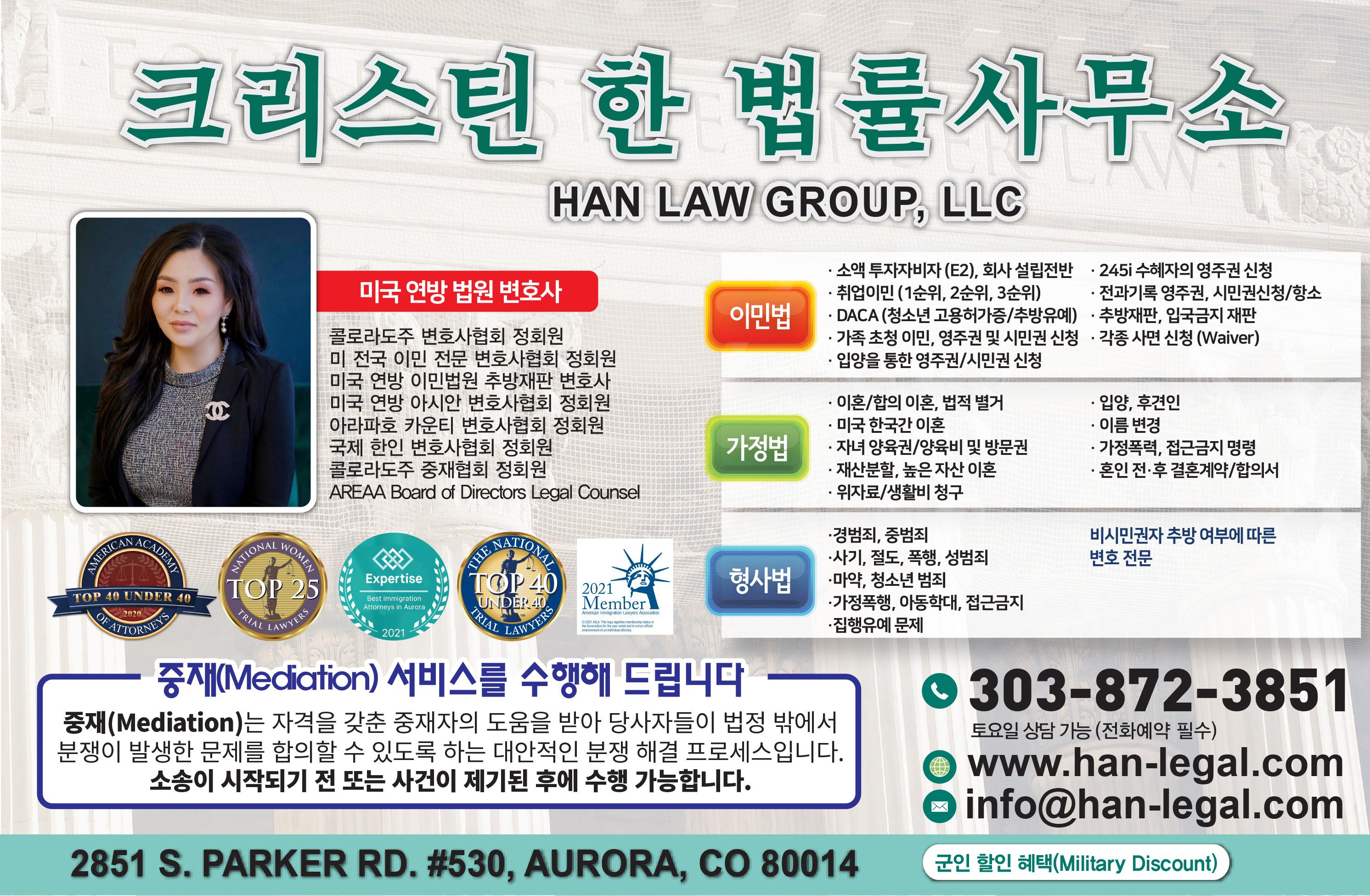 728 점으로 상대적으로 많은 부채를 더 잘 관리할 수 있는 것으로 보 인다. 이은혜 기자 SBA자체 승인 대출기관(PLP Lender)으로서 신속한 결정 장기 융자기간 제공(부동산 융자 25년, 비즈니스 융자 10년까지) 낮은 다운 페이먼트 부담(부동산 융자일 경우 최저10%) 분할상환 스케쥴융자(만기 일시 상환이 아님) 및 클로징비용 대출 가능 * 모든 관련 조건 및 약관은 융자진행 및 신용 승인 결과에 따라 달라질 수 있습니다. Bank of Hope SBA Loans* 장우식 (Woo Shik Chang) SVP & SBA Loan Production Offi ce Manager 2851 S. Parker Rd. Suite 210, Aurora, CO 80014 Direct (720) 287-4536 Cell (720) 236-5424 Email woo.chang@bankofhope.com 303-751-2567 Koreadaily.com 2022년 12월 06일 화요일 The Korea Daily Denver 콜로라도 주민 신용카드 빚 많다 1인당 3,840달러로 전국 8위…연체율은 낮아 콜로라도 최고봉 에반스 산 ‘블루 스카이 산’으로 개명 콜로라도를 비롯한 서부지 역 일부 주정부들과 연방정 부가