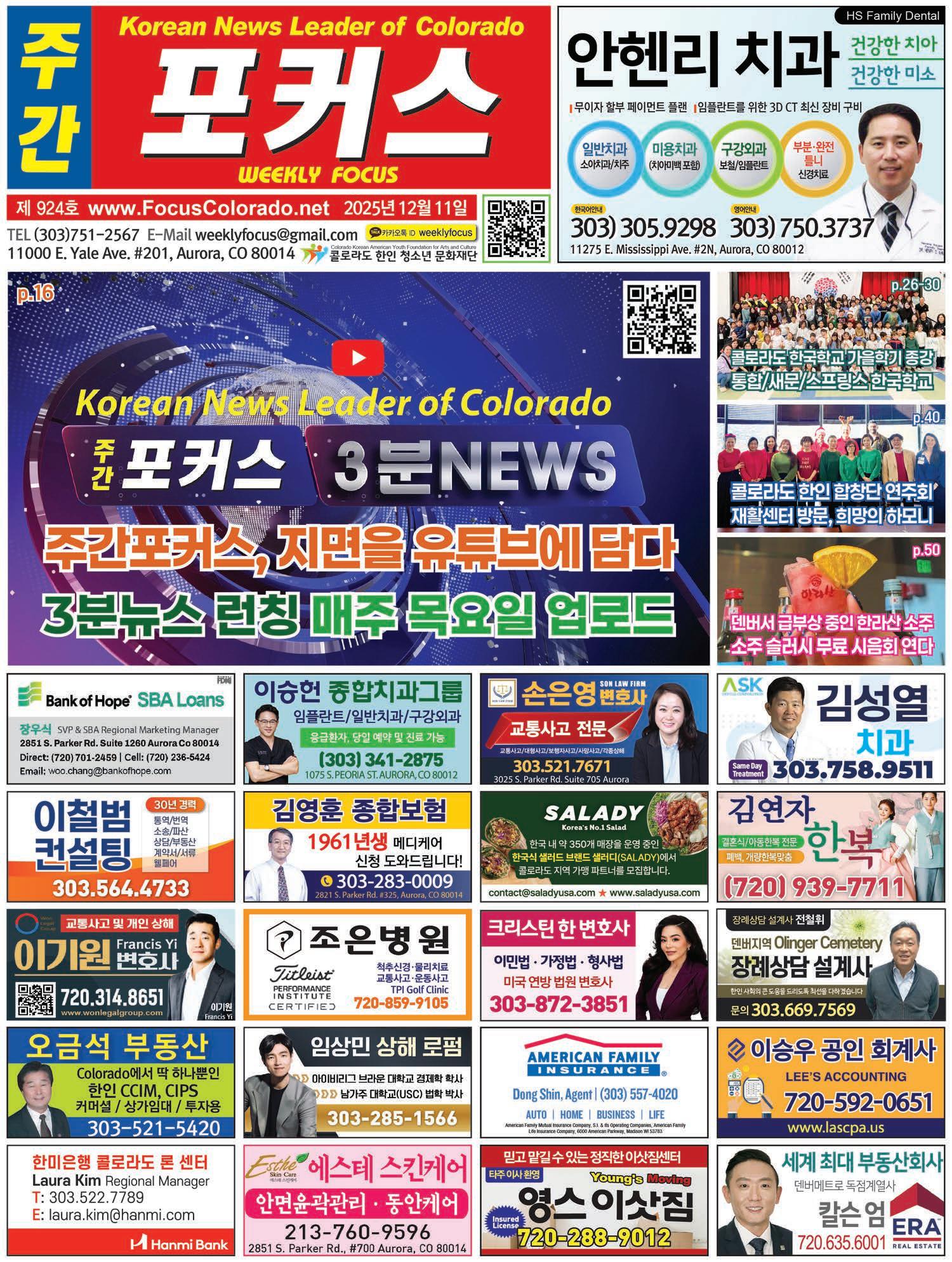 11000 E. Yale Ave. #30, Aurora, CO 80014 www.focuscolorado.net www.focuscolorado.net / e-신문 weeklyfocus focuscolorado.net 핫딜