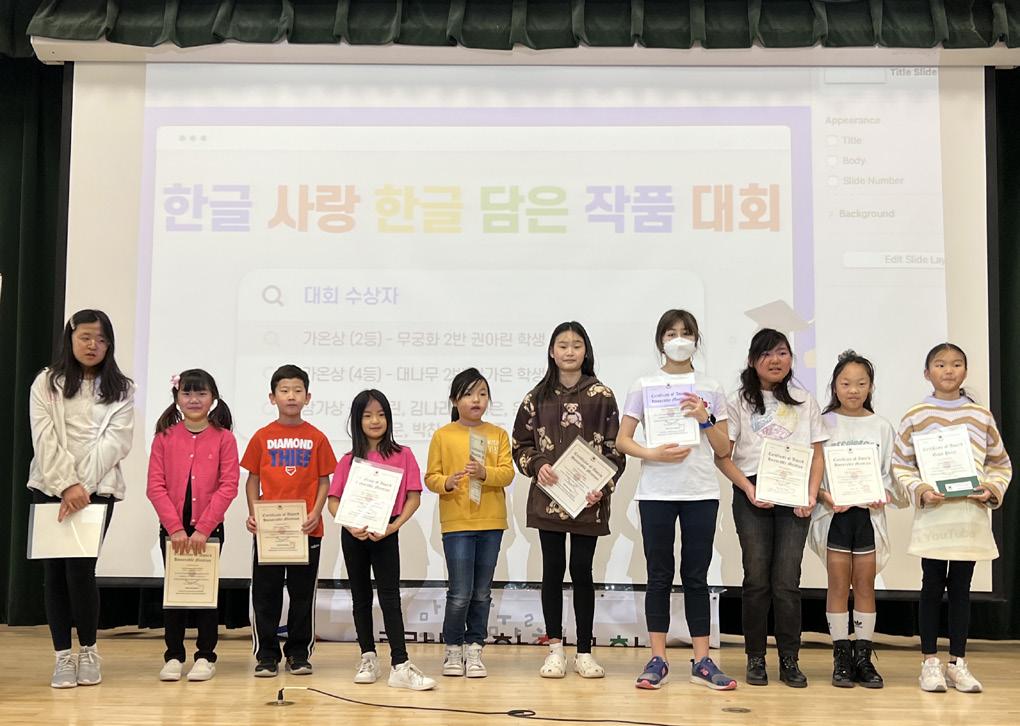 2022년 12월 20일 화요일 2022 가을학기 콜로라도 통합 한 국학교(교장 김은주) 종강식의 주제다. 지난 10일, 콜로라도 통 합 한국학교는 2022 가을학기를 마치며, 한 학기 동안 진행된 다 양한 특별 강의와 주제학습 등의 결과물을 학부모들에게 선보였 다. 이번 학기 동안 진행된 특별 강의는 미술, 국악, 태권도다. 종강식은 샌프란시스코 교육원 에서 주최한 ‘한글 사랑 한글 담 은 작품 대회’ 시상식으로 시작 했다. 고학년 반인 무궁화 2반 권 아린 학생이 ‘우리 엄마는!’이라 는 제목의 시를 출품해 이 대회 에서 2등 상인 가온상을 받았다. 또 다른 고학년 반인 대나무 2반 이가은 학생은 같은 대회에서 4 등 상을 수상했고, 학교 대표로 참가한 8명의 학생들에게는 참 가 상장이 전달됐다. 시상식 후 에는 권아린 학생이 당선작인 시, ‘우리 엄마는!’을 낭독했다. 이어 서, 저학년 학생들이 국악 특강 으로 배운 소고춤, ‘내 친구 소고 도령’을 선보였고,